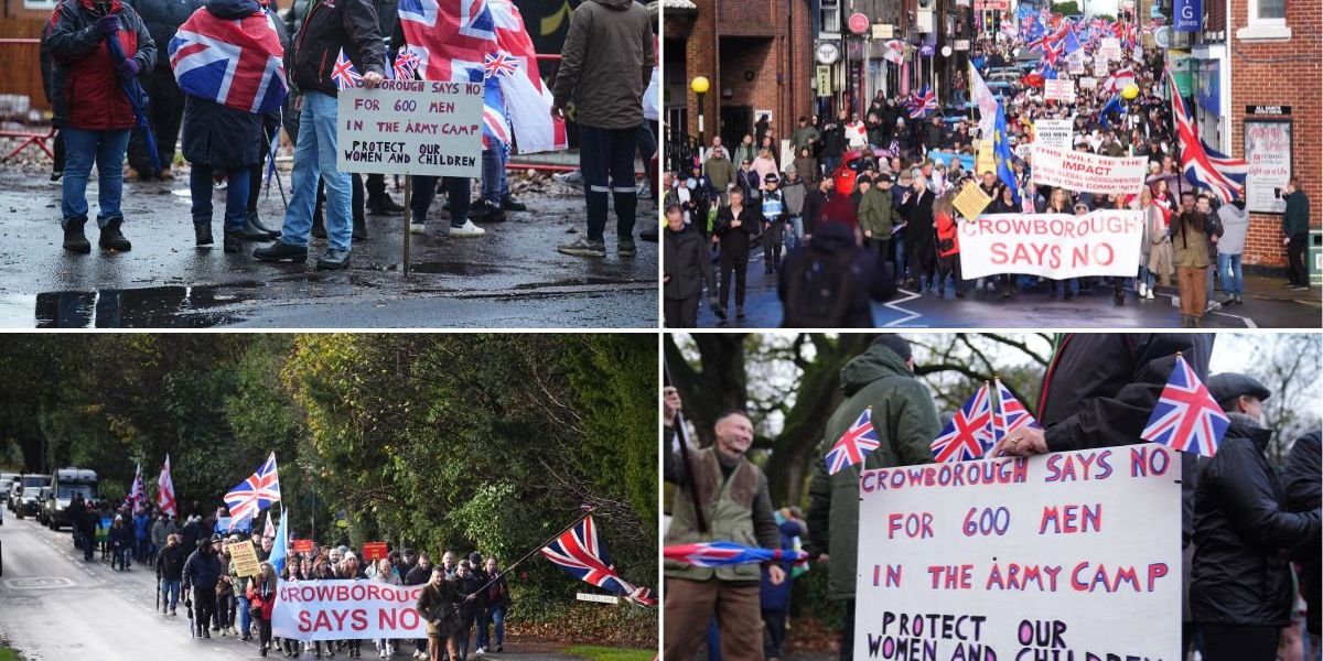 Thousands of people have descended on Crowborough as locals continue to protest against plans to house 600 asylum seekers ...