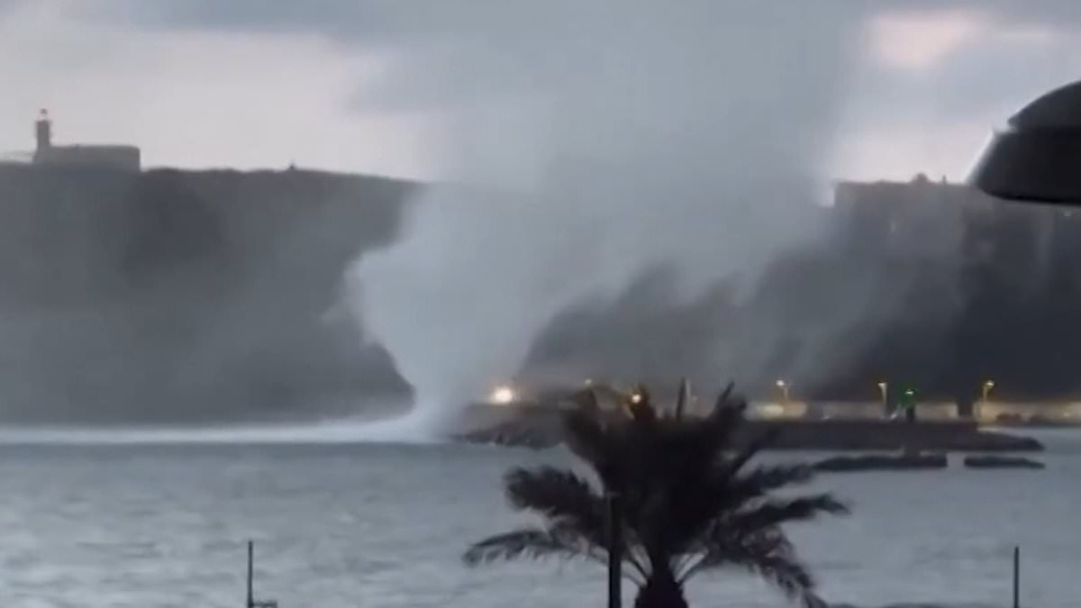 Terrifying moment waterspout rips through harbour in Spanish holiday resort as floods leave at least one dead and others injured