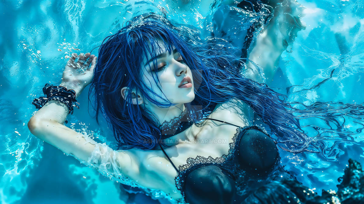 She loosens her grip on the surface,lets the world above blur into rumor.Water braids her hair with patience,cups her ribs...