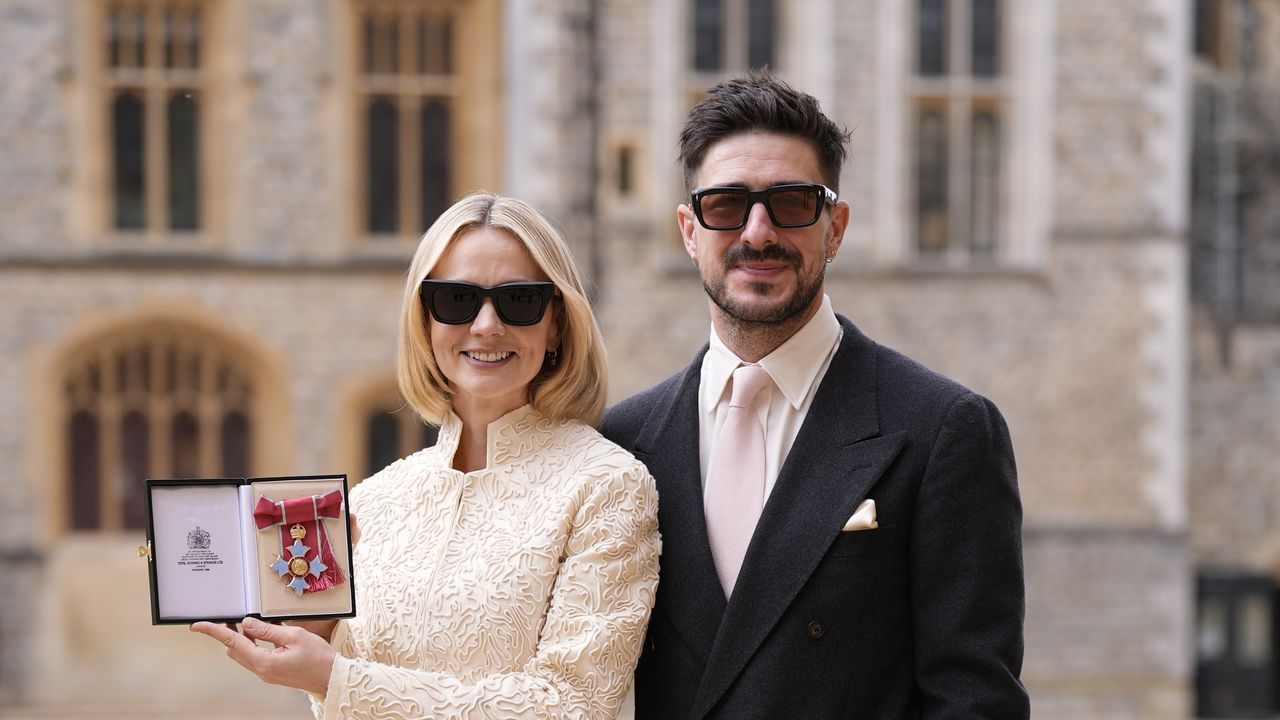 Black and white, with a hint of sophistication: the actor opted for elegance as she was honored by King Charles III.