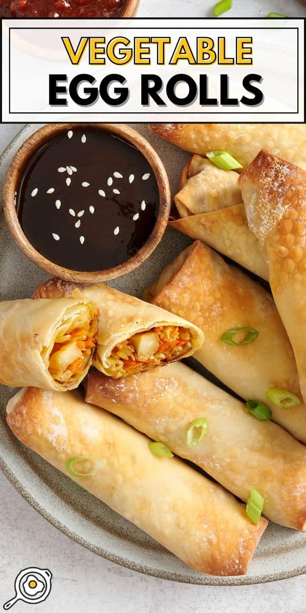 Serving SuggestionsSome of the best dipping sauces for vegetable egg rolls, in my opinion, are hoisin, sambal, sweet chili sauce, and sweet and sour sauce. I like to set out a little lineup of dips and let everyone choose their favorite if I’m serving these at a party or gathering (e.g, New Year’s!). I also love serving these baked egg rolls alongside a few takeout-style favorites of my own, like chicken fried rice and egg drop soup. My easy lo mein is also perfect if we are keeping things vegetarian!