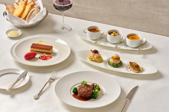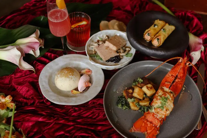 For a five-course degustation menu ($180++ per person), guests can visit Gordon Grill, located inside the classical European-style Goodwood Park Hotel. This special menu is available on 13 and 14 February, and guests can also opt for a meal with wine pairing ($215++ per person).