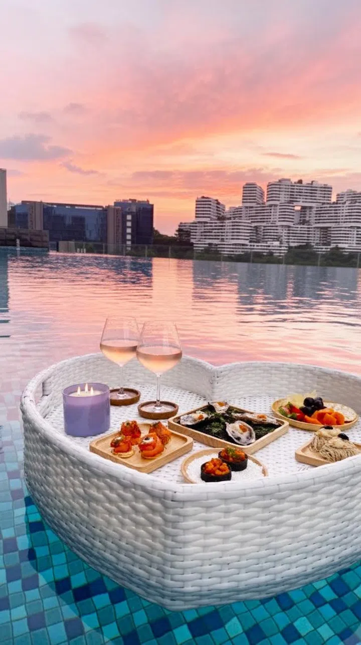 A few couples may be searching for stunning views and poolside dining. Momentous Hotel Alexandra provides just that and more with their floating bar experience ($118++), available for all.