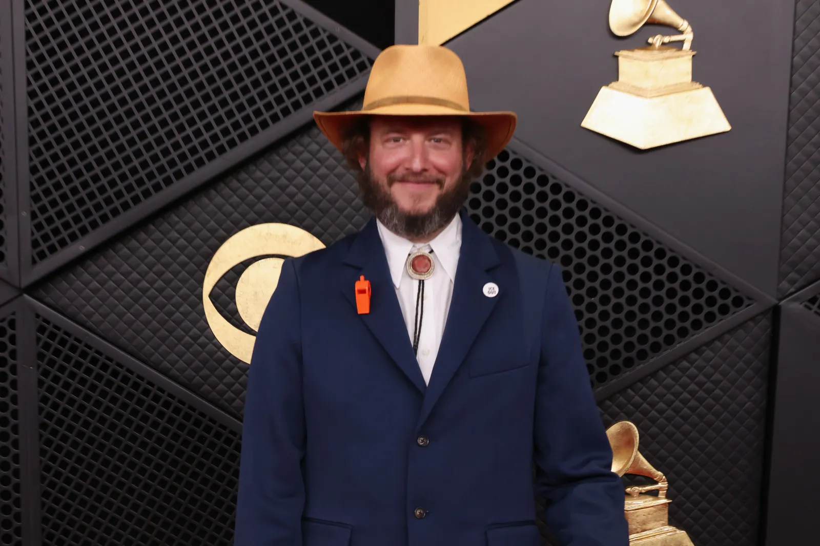 Justin Vernon, whose band Bon Iver is nominated for best alternative music album, wore a whistle to honor legal observers documenting federal agents' actions on the streets.