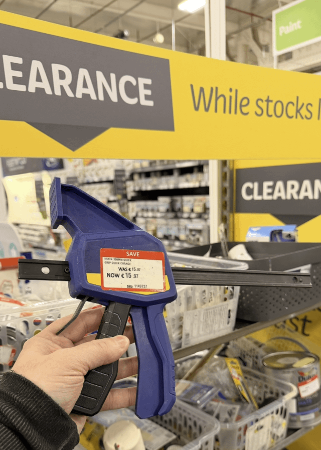 Woodies have a clearance section in Blackpool, Cork. Hurry down, and you too can have half a clamp for 16 euro! Which is ... the same price as it was new. Deal of the year so far for me.