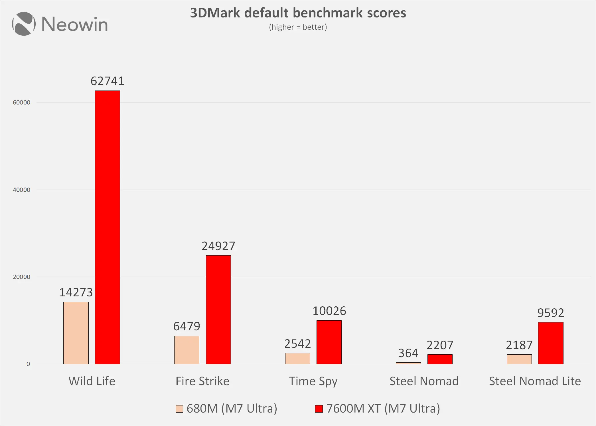 As was to be expected, the Radeon 7600M XT blows the 680M out of the water, with only the CPU-bound tests returning a result inside the margin of error; no surprises here.