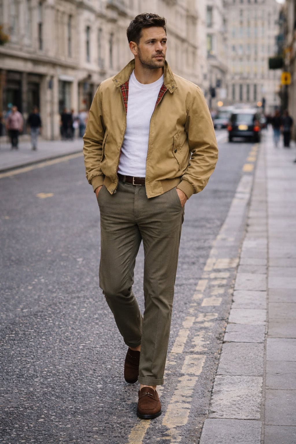 Ralph Lauren Americanised the Harrington by way of Ivy League styling, with slightly roomier fits, classic collars and an overall softer structure. Think of its versions as part of a broader preppy wardrobe rather than a standalone icon.
