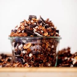 This cookies and cream granola is the ultimate crunchy snack! Tasting just like your favorite cookies, this is super satisfying and delicious, ideal to add to yogurt, milk or even eat by the handful.