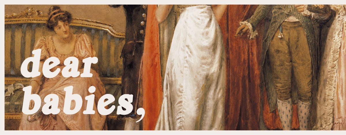 Hey! Welcome back to my advice column, and pardon my absence last week as I was sick and also rushing my toddler around to various doctors to see if she’d contracted Scarlet Fever, which it turns out is not an obsolete turn-of-the-century diagnosis but still a semi-common infection in kids. Thankfully she did not have it, just a collection of mysterious maladies <3