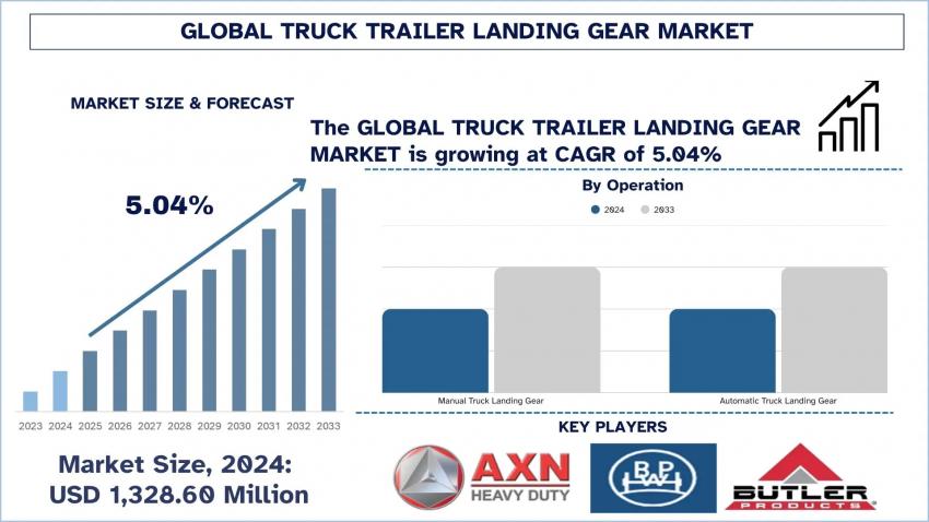 The Global Truck Trailer Landing Gear Market was valued at USD 1,328.60 million in 2024 and is expected to grow at a steady CAGR of approximately 5.04% over the forecast period...