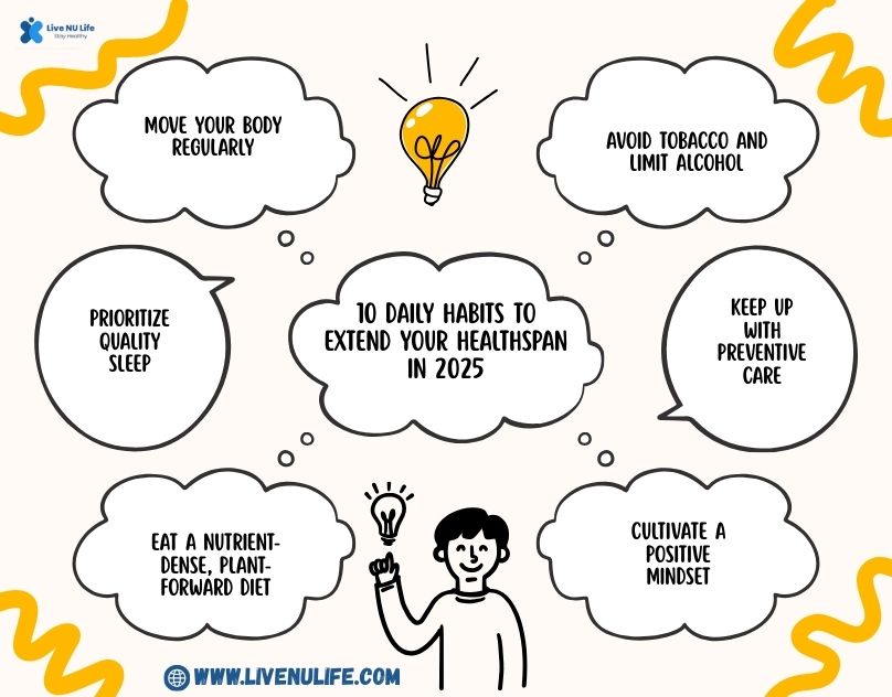 Let’s explore the 10 Daily Habits to Extend Your Healthspan in 2025 that can help you extend your healthspan in 2025 and beyond.