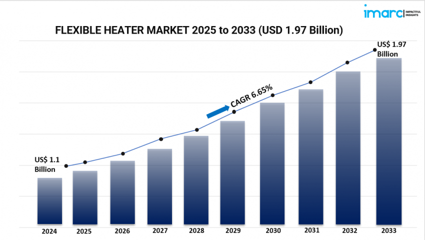 The global Flexible Heater Market was valued at USD 1.1 Billion in 2024 and is projected to reach USD 1.97 Billion by 2033, growing at a CAGR of 6.65% during the forecast period...