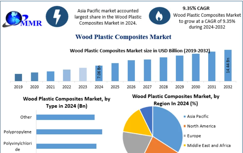 The Wood Plastic Composites Market is projected to reach USD 14.44 billion by 2032, growing at a compound annual growth rate (CAGR) of 9.35% during the forecast period from 2025...