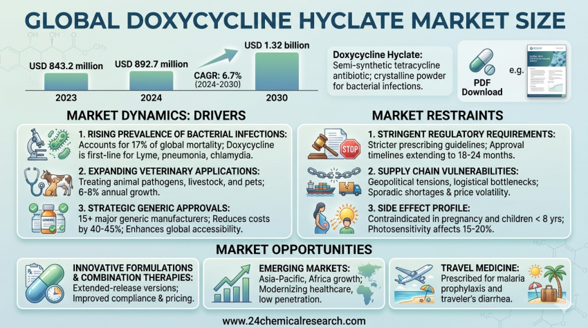 Global Doxycycline Hyclate Market size was valued at USD 843.2 million in 2023. The market is projected to grow from USD 892.7 million in 2024 to USD 1.32 billion by 2030, exhibiting a...