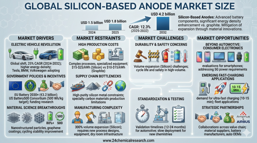 Global Silicon-based Anode market was valued at USD 1.5 billion in 2024 and is projected to reach USD 4.2 billion by 2032, exhibiting a remarkable CAGR of 12.3% during the forecast...