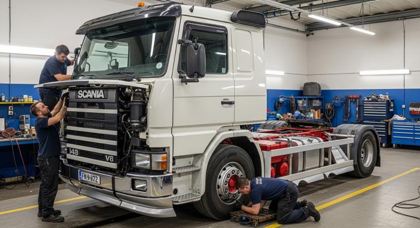 Fuel efficiency on an older Scania tractor unit improves through disciplined servicing, precise engine diagnostics, injector calibration, drivetrain optimization, correct tyre pressure management,...