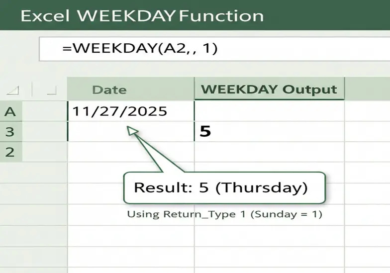 excel WEEKDAY Function Guide